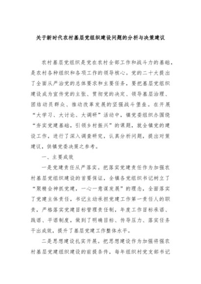 / 【七哥公文】2024年:关于新时代农村基层党组织建设问题的分析与决策建议+更多免费公文+VX:QiGeGongWen2024