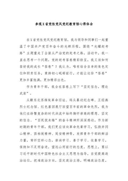 【七哥公文】2024年:参观X省党性党风党纪教育馆心得体会+更多免费公文+VX:QiGeGongWen2024