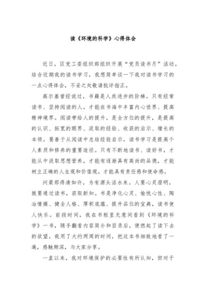 / 【七哥公文】2024年:读《环境的科学》心得体会+更多免费公文+VX:QiGeGongWen2024