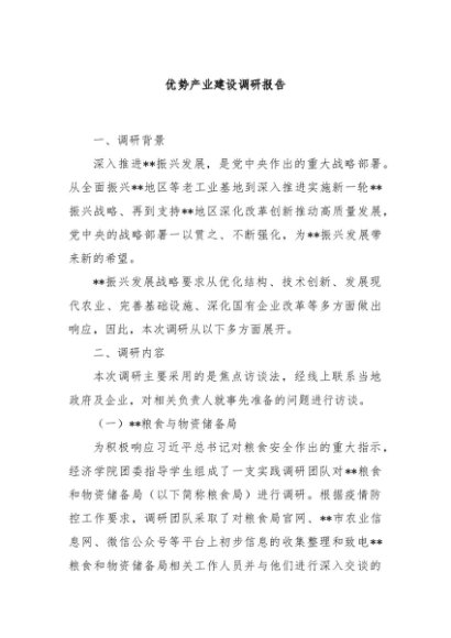 / 【七哥公文】2024年:优势产业建设调研报告+更多免费公文+VX:QiGeGongWen2024