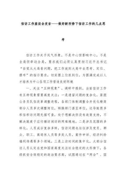 【七哥公文】2024年:信访工作座谈会发言——做好新形势下信访工作的几点思考+更多免费公文+VX:QiGeGongWen2024