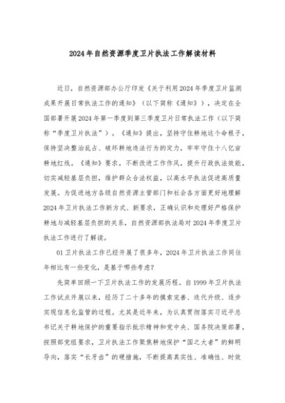 / 【七哥公文】2024年:2024年自然资源季度卫片执法工作解读材料+更多免费公文+VX:QiGeGongWen2024