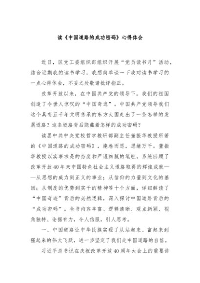 / 【七哥公文】2024年:读《中国道路的成功密码》心得体会+更多免费公文+VX:QiGeGongWen2024