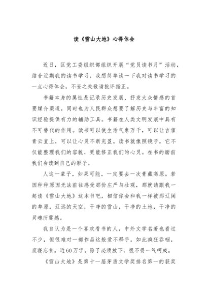 【七哥公文】2024年:读《雪山大地》心得体会+更多免费公文+VX:QiGeGongWen2024