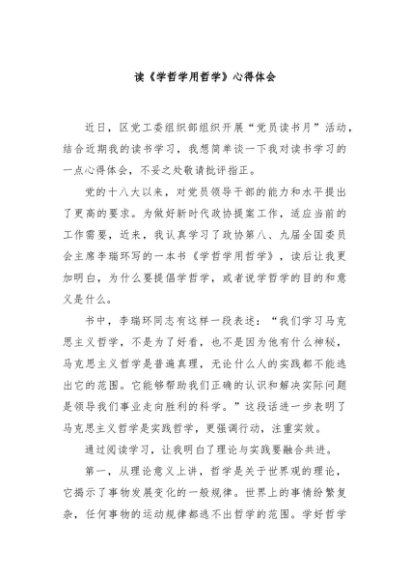 / 【七哥公文】2024年:读《学哲学用哲学》心得体会+更多免费公文+VX:QiGeGongWen2024