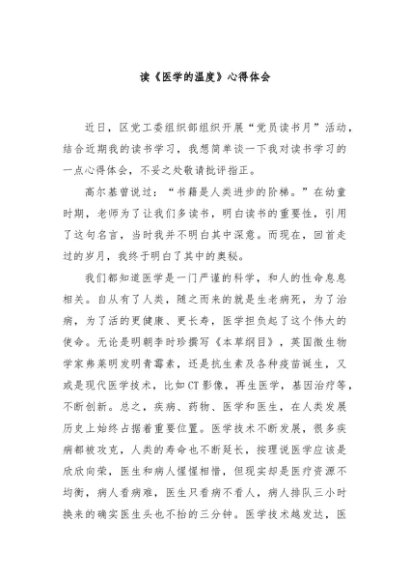 / 【七哥公文】2024年:读《医学的温度》心得体会+更多免费公文+VX:QiGeGongWen2024