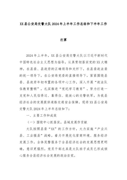 【七哥公文】2024年:XX县公an局交警大队2024年上半年工作总结和下半年工作打算+更多免费公文+VX:QiGeGongWen2024