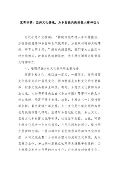 【七哥公文】2024年:党课讲稿:坚持文化铸魂,为乡村振兴提供强大精神动力+更多免费公文+VX:QiGeGongWen2024