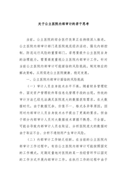 【七哥公文】2024年:关于公立医院内部审计的若干思考+更多免费公文+VX:QiGeGongWen2024
