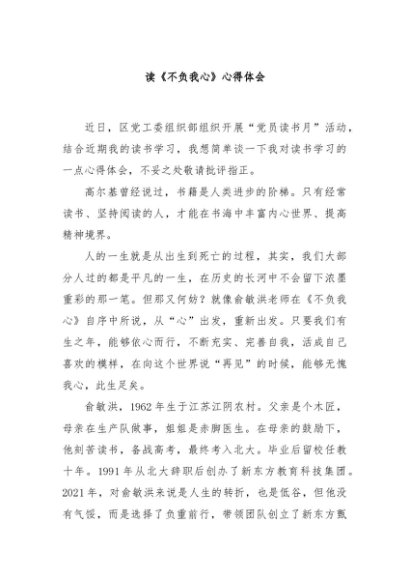 【七哥公文】2024年:读《不负我心》心得体会+更多免费公文+VX:QiGeGongWen2024