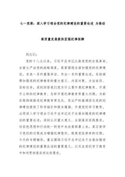 【七哥公文】2024年:七一党课:深入学习领会党的纪律建设的重要论述 为推动高质量发展提供坚强纪律保障+更多免费公文+VX:QiGeGongWen2024