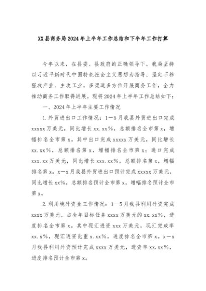 【七哥公文】2024年:XX县商务局2024年上半年工作总结和下半年工作打算+更多免费公文+VX:QiGeGongWen2024