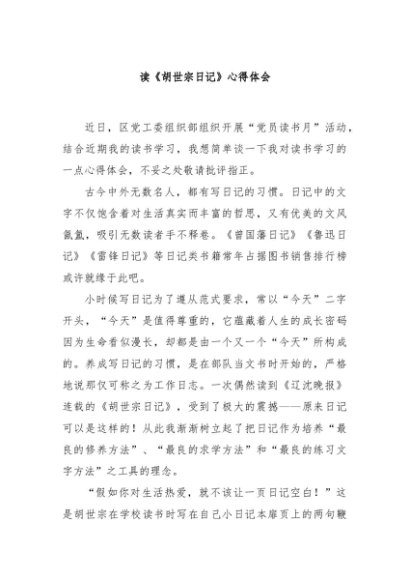 / 【七哥公文】2024年:读《胡世宗日记》心得体会+更多免费公文+VX:QiGeGongWen2024