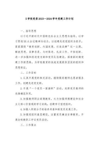 / 【七哥公文】2024年:X学校党委2023-2024学年党建工作计划+更多免费公文+VX:QiGeGongWen2024