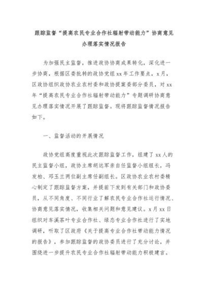 【七哥公文】2024年:跟踪监督“提高农民专业合作社辐射带动能力”协商意见办理落实情况报告+更多免费公文+VX:QiGeGongWen2024