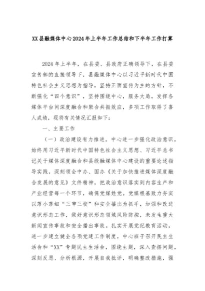 【七哥公文】2024年:XX县融媒体中心2024年上半年工作总结和下半年工作打算+更多免费公文+VX:QiGeGongWen2024