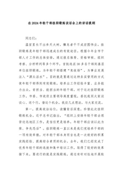 / 【七哥公文】2024年:在2024年轻干部挂职锻炼谈话会上的讲话提纲+更多免费公文+VX:QiGeGongWen2024