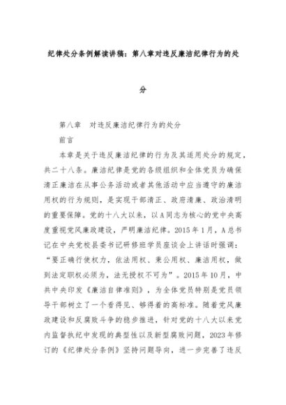 【七哥公文】2024年:纪律处分条例解读讲稿:第八章对违反廉洁纪律行为的处分+更多免费公文+VX:QiGeGongWen2024