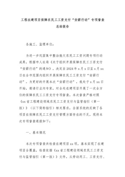 【七哥公文】2024年:工程在建项目保障农民工工资支付“安薪行动”专项督查总结报告+更多免费公文+VX:QiGeGongWen2024