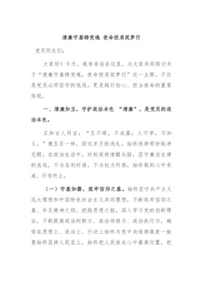 【七哥公文】2024年:清廉守基铸党魂 使命担肩筑梦行+更多免费公文+VX:QiGeGongWen2024