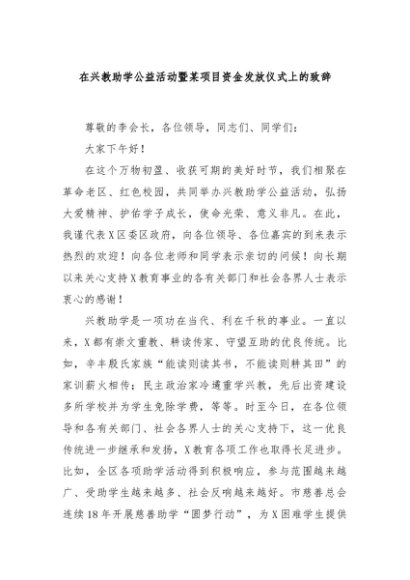 / 【七哥公文】2024年:在兴教助学公益活动暨某项目资金发放仪式上的致辞+更多免费公文+VX:QiGeGongWen2024