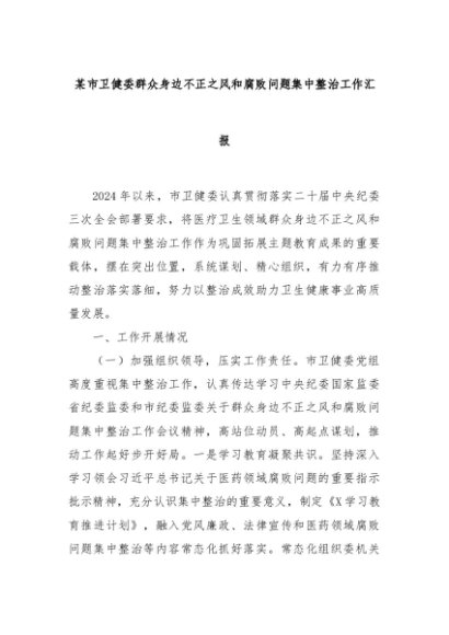 【七哥公文】2024年:某市卫健委群众身边不正之风和腐败问题集中整治工作汇报+更多免费公文+VX:QiGeGongWen2024