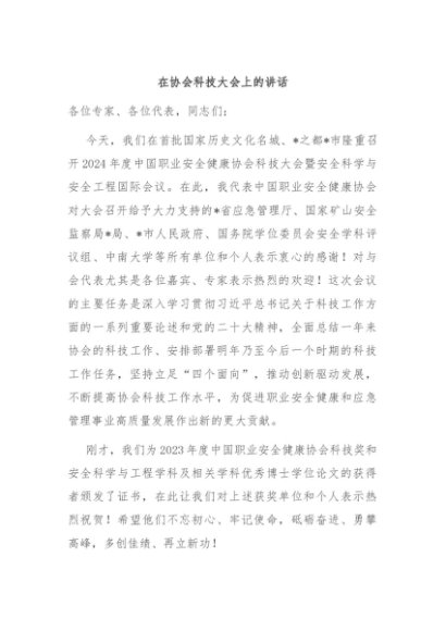 / 【七哥公文】2024年:在协会科技大会上的讲话+更多免费公文+VX:QiGeGongWen2024