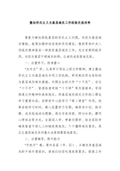 / 【七哥公文】2024年:整治形式主义为基层减负工作经验交流材料+更多免费公文+VX:QiGeGongWen2024