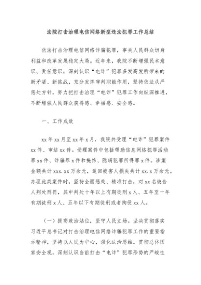 / 【七哥公文】2024年:法院打击治理电信网络新型违法犯罪工作总结+更多免费公文+VX:QiGeGongWen2024