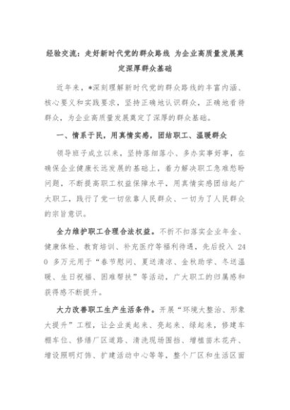 【七哥公文】2024年:经验交流:走好新时代党的群众路线 为企业高质量发展奠定深厚群众基础+更多免费公文+VX:QiGeGongWen2024