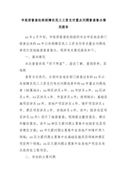 【七哥公文】2024年:市政府督查机构保障农民工工资支付重点问题督查督办情况报告+更多免费公文+VX:QiGeGongWen2024