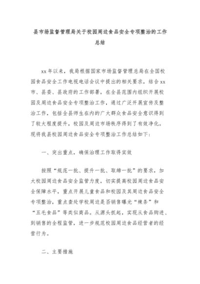 【七哥公文】2024年:县市场监督管理局关于校园周边食品安全专项整治的工作总结+更多免费公文+VX:QiGeGongWen2024