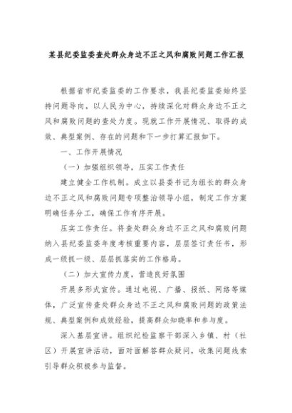 【七哥公文】2024年:某县纪委监委查处群众身边不正之风和腐败问题工作汇报+更多免费公文+VX:QiGeGongWen2024