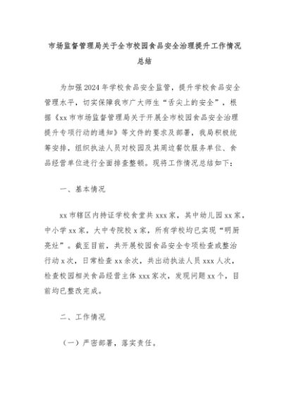 【七哥公文】2024年:市场监督管理局关于全市校园食品安全治理提升工作情况总结+更多免费公文+VX:QiGeGongWen2024
