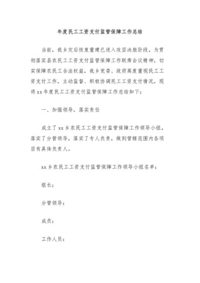 / 【七哥公文】2024年:年度民工工资支付监管保障工作总结+更多免费公文+VX:QiGeGongWen2024