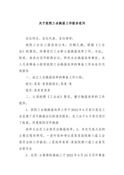 / 【七哥公文】2024年:关于医院工会换届工作报告范问+更多免费公文+VX:QiGeGongWen2024