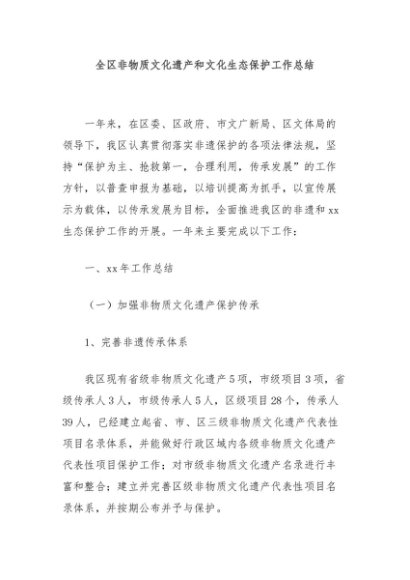 / 【七哥公文】2024年:全区非物质文化遗产和文化生态保护工作总结+更多免费公文+VX:QiGeGongWen2024