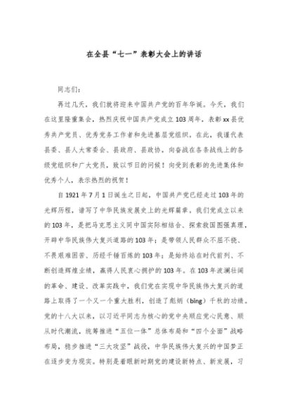 / 【七哥公文】2024年:在全县“七一”表彰大会上的讲话+更多免费公文+VX:QiGeGongWen2024