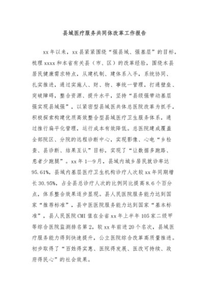 / 【七哥公文】2024年:县域医疗服务共同体改革工作报告+更多免费公文+VX:QiGeGongWen2024