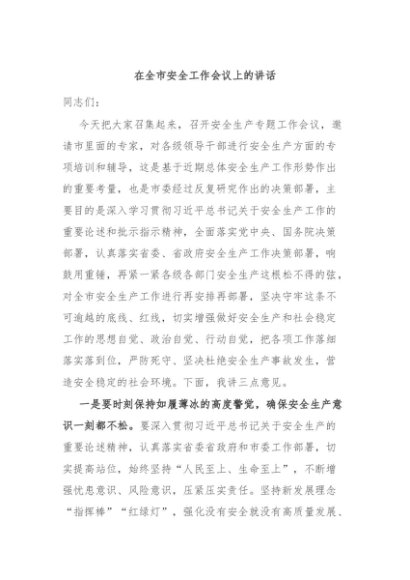 / 【七哥公文】2024年:在全市安全工作会议上的讲话+更多免费公文+VX:QiGeGongWen2024