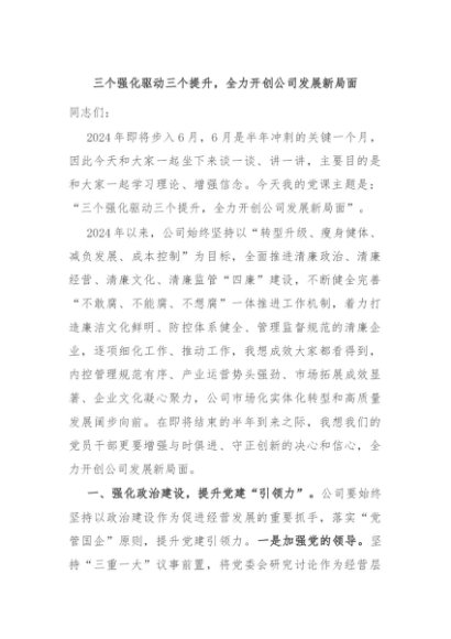 【七哥公文】2024年:三个强化驱动三个提升,全力开创公司发展新局面+更多免费公文+VX:QiGeGongWen2024
