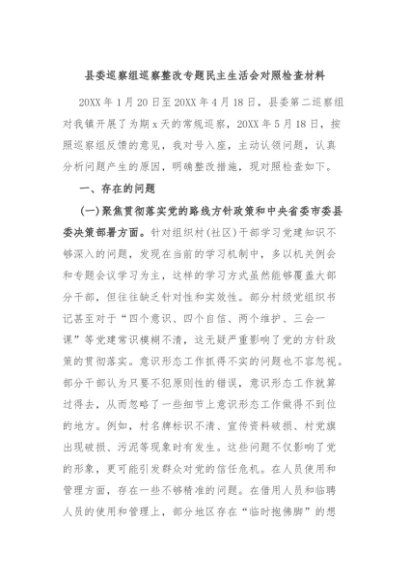 / 【七哥公文】2024年:县委巡察组巡察整改专题民主生活会对照检查材料+更多免费公文+VX:QiGeGongWen2024
