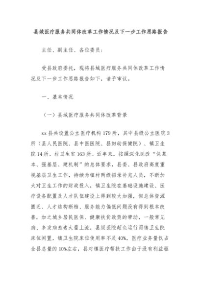 【七哥公文】2024年:县域医疗服务共同体改革工作情况及下一步工作思路报告+更多免费公文+VX:QiGeGongWen2024