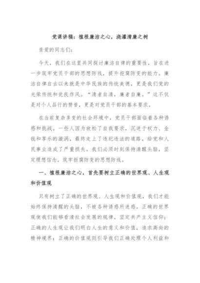 / 【七哥公文】2024年:党课讲稿:植根廉洁之心,浇灌清廉之树+更多免费公文+VX:QiGeGongWen2024