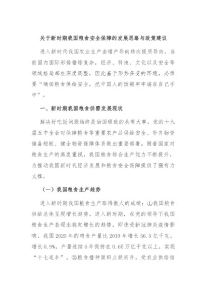 【七哥公文】2024年:关于新时期我国粮食安全保障的发展思路与政策建议+更多免费公文+VX:QiGeGongWen2024
