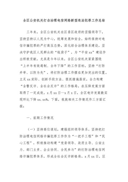 / 【七哥公文】2024年:全区公安机关打击治理电信网络新型违法犯罪工作总结+更多免费公文+VX:QiGeGongWen2024