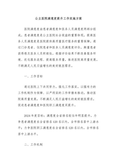/ 【七哥公文】2024年:公立医院满意度提升工作实施方案+更多免费公文+VX:QiGeGongWen2024