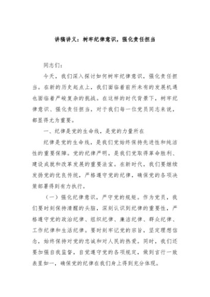 / 【七哥公文】2024年:讲稿讲义:树牢纪律意识,强化责任担当+更多免费公文+VX:QiGeGongWen2024