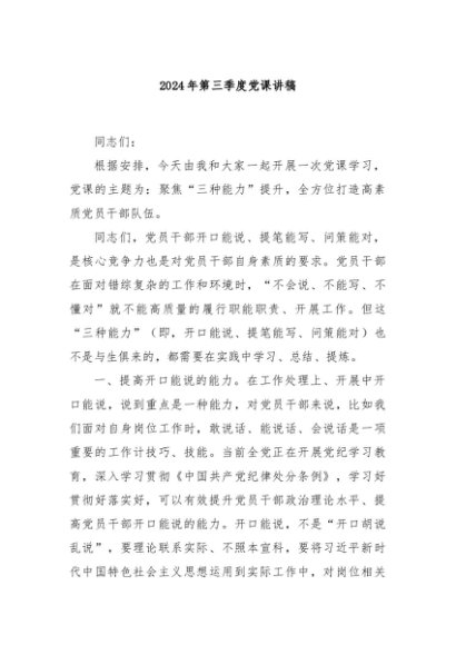 / 【七哥公文】2024年:2024年第三季度党课讲稿+更多免费公文+VX:QiGeGongWen2024