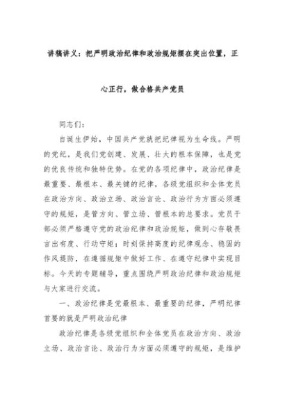 【七哥公文】2024年:讲稿讲义:把严明政治纪律和政治规矩摆在突出位置,正心正行,做合格共产党员+更多免费公文+VX:QiGeGongWen2024